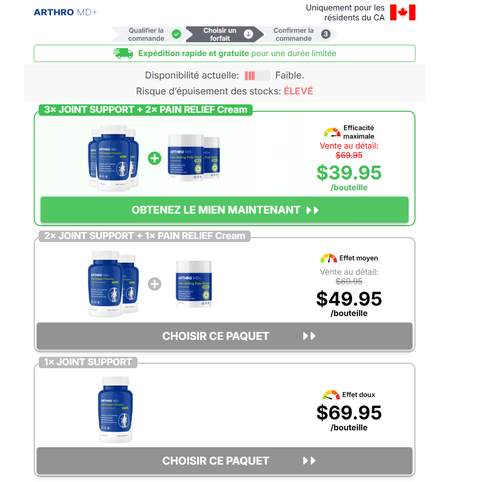 Joint Support Canada propose différents forfaits afin de répondre aux préférences de chaque client. Certains forfaits incluent uniquement les Joint Support Complex Capsules, tandis que d’autres combinent les capsules avec la Pain Relief Cream.